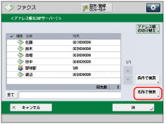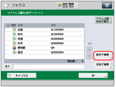 [条件で検索]から宛先を絞り込んで検索結果が宛先リスト画面に表示された場合、さらに[名称で検索]を押して名称で絞り込む検索はできません。