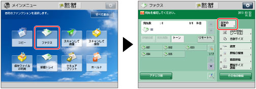 (メインメニュー)→[ファクス]→[設定の履歴]を押す
