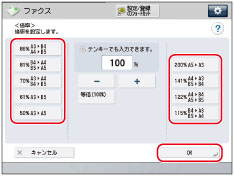 長尺原稿を選択すると、倍率は100%でのみ送信できます。