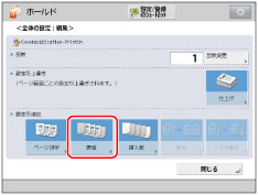 [ホチキス]を選択したとき、ホチキスできる用紙枚数と表紙・裏表紙枚数の合計については、「ホチキスでとじることができる枚数」を参照してください。