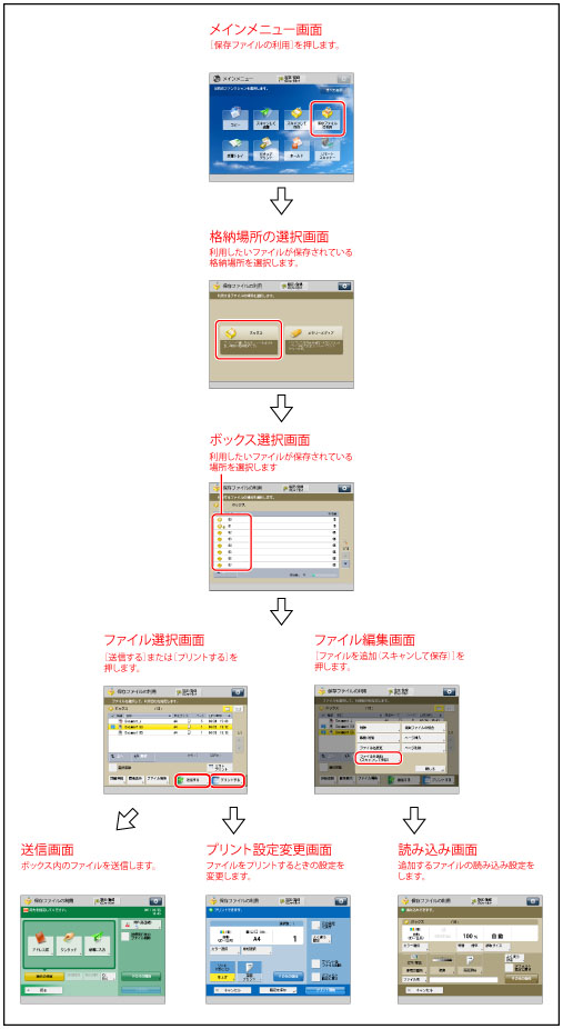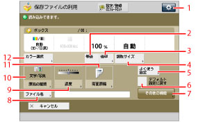 [ファイルを追加(スキャンして保存)]の操作および読み込み画面の操作手順については、「ファイルを追加する(スキャンして保存)」、「スキャンして保存の操作の流れ」を参照してください。