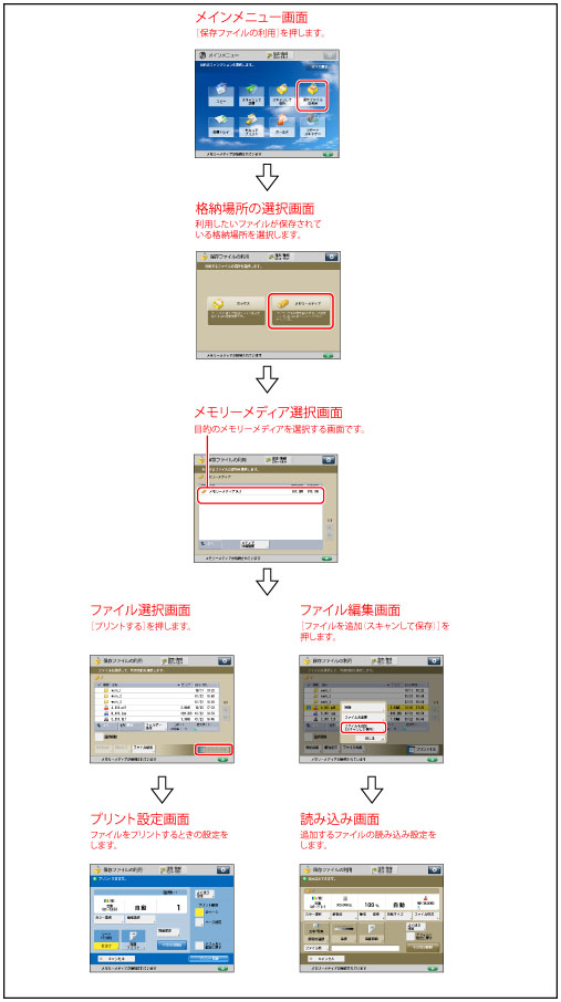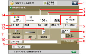 [ファイルを追加(スキャンして保存)]の操作および読み込み画面の操作手順については、「ファイルを追加する(スキャンして保存)」、「スキャンして保存の操作の流れ」を参照してください。