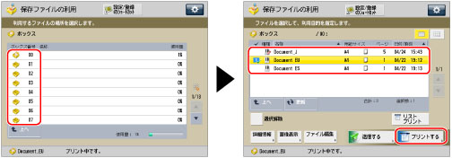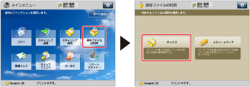 (メインメニュー)→[保存ファイルの利用]→[ボックス]を押す