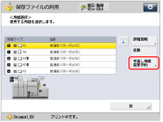 [手差し用紙のデフォルト設定登録] を「ON」に設定すると、登録してある用紙でのみジョブの予約をすることができます。(→手差し用紙のデフォルト設定を登録する)