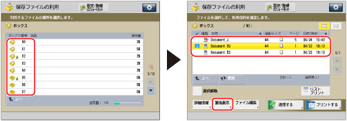 (メインメニュー)→[保存ファイルの利用]→[ボックス]を押す