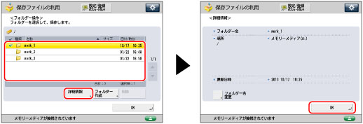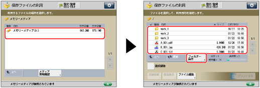 (メインメニュー)→[保存ファイルの利用]→[メモリーメディア]を押す