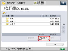 目的のメモリーメディアを選択→目的のフォルダーがある階層を選択→[フォルダー操作]を押す
