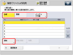 挿入紙を削除するときは、削除したい設定内容を選択してから[削除]を押します。