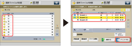 本機能は、ボックスに保存したファイルをプリントするときのみ使用できます。