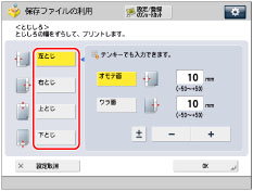 0以外のとじしろ幅を入力したときに[±]を押すと、+と-を入替えることができます。
