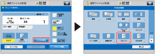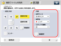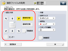 [ページ印字/スタンプの文字列登録]に登録されている文字列から選ぶこともできます。(→ページ印字/スタンプの文字列を登録/編集/削除する)