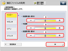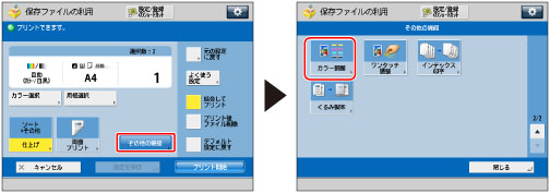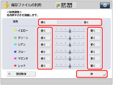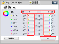 原稿台ガラス/フィーダーから読み込んだボックス文書をフルカラーモードでプリントする場合、[フルカラー時の鮮やかさ設定]で、フルカラーモード時の色調を変更できます。(→フルカラー時の色味を鮮やかにする)
