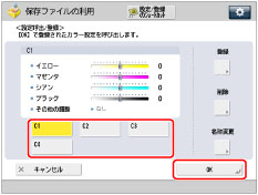 文字を入力していない状態で[OK]を押すと、キーの名称は C1~C4 になります。