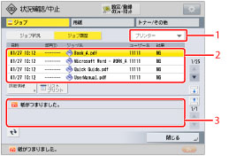 ジョブ状況画面では、現在処理中または待機中のすべてのジョブがリスト表示されます。
