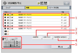 各給紙箇所にセットされている用紙情報や残量がリスト表示されます。