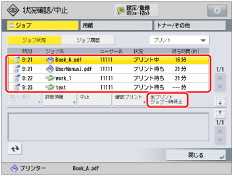 プリント中のコピージョブを一時停止/再開するときも、ジョブ種類は[プリント]を選択してください。[コピー]を選択した場合には、必要な操作ボタンは表示されません。