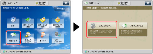 (メインメニュー)→[受信トレイ]→[システムボックス]を押す