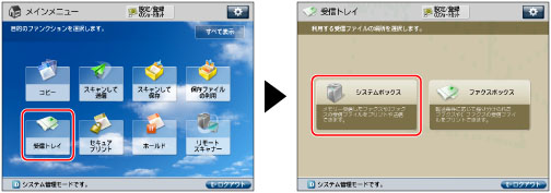 (メインメニュー)→[受信トレイ]→[システムボックス]を押す