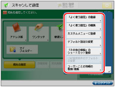 スキャンして送信:よく使う設定の登録/編集/削除をする