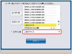 <ログイン先>ドロップダウンリストにはユーザー認証可能なドメインのドメイン名またはLDAPサーバーのサーバー名が表示されます。