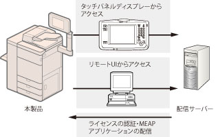 本製品から配信サーバーにアクセスして、システムオプション/MEAPアプリケーションをインストールします。