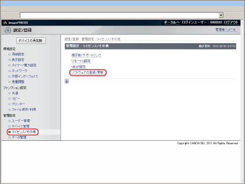 ここで説明している操作を行うためには、本製品に管理者としてログインする必要があります。(→本製品に管理者としてログインする)