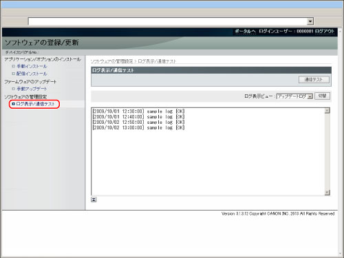 [ソフトウェアの管理設定]→[ログ表示の選択]→[アップデートログの表示]を押す