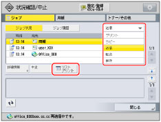 送信ジョブリストには、ファクス、Eメール、Iファクス、ファイルサーバーの宛先や、ボックスに送信するジョブが表示されます。