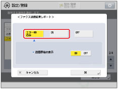 本設定を「ON」にしてファクス同報送信を行った場合、ファクスマルチ送信結果レポートが出力されます。(→ファクスマルチ送信結果レポート)