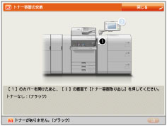 タッチパネルディスプレーに表示される[前の手順へ]、[次の手順へ]を押して、交換方法を確認できます。