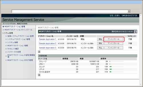 アプリケーションのライセンスの状態が「未インストール」の場合、アンインストールできます。アプリケーションのライセンスの状態が「未インストール」ではない場合は、ライセンスファイルを無効化して、削除したあと、アンインストールできます。(→アプリケーションのライセンス管理をする)
