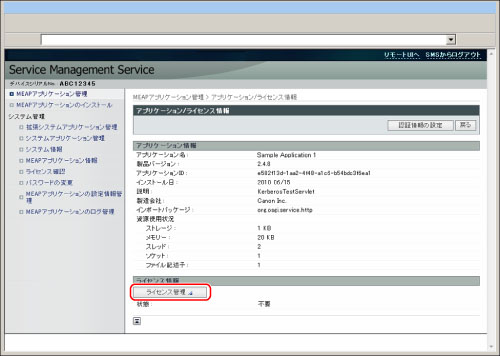 無効化したライセンスファイルが生成されると、ライセンスファイルの状態は「未インストール」になり、アプリケーションを使用できなくなります。