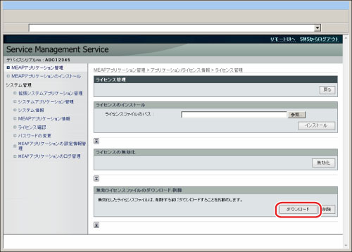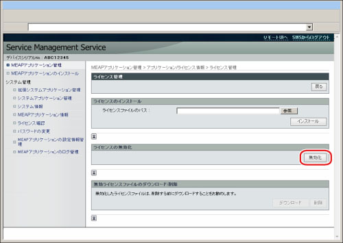 無効化されているライセンスファイルのみ、ダウンロードや削除を行えます。