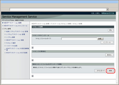 無効化したライセンスファイルを削除すると、再び本体からダウンロードすることはできなくなります。