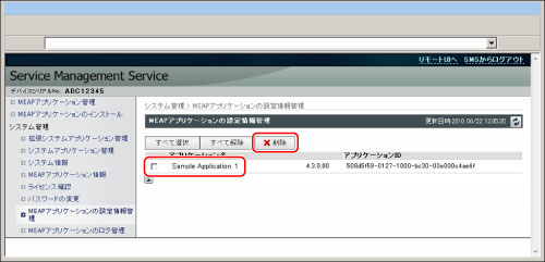削除するMEAPアプリケーションにチェックマークを付ける→[削除]をクリック