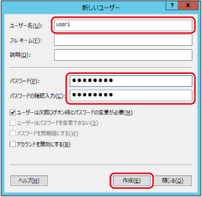 Active Directory環境では、ユーザーの登録手順は上記と異なります。詳細は、Windowsの説明書を参照してください。