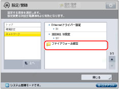 [環境設定]→[ネットワーク]→[ファイアウォール設定]を押す