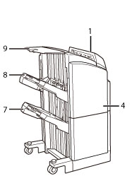 製本トレイに出力する用紙サイズに合わせてセットします。(→フィニッシャーの機能)