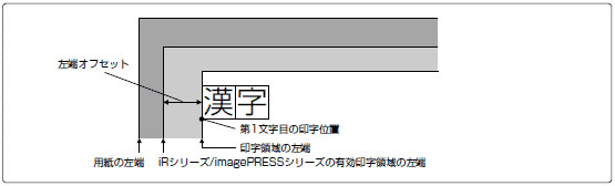 左端オフセット量は「用紙位置微調整」が初期値[0]の場合です。
