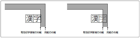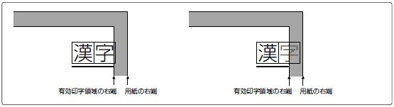 文字にアンダーラインを引いている場合、同様に文字幅が有効印字領域を越えなければ、文字およびアンダーラインを印字しますが、文字幅が有効印字領域を越える場合は、文字を印字せずに有効印字領域内のアンダーラインだけを印字します。