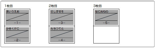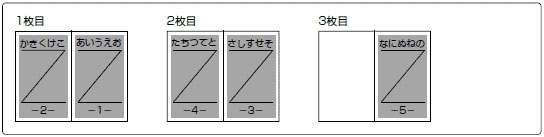 たとえば、5ページ分の印字データは、次のように印字されます。