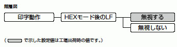 ヘキサ形式モードからバイナリ形式モードに戻ったとき、ホストコンピュータから送られてくるコードLF(改行)を無視するかどうかを設定します。