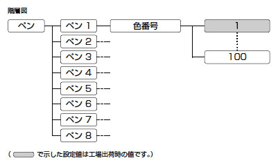 サンプルプリントAで印刷される1から100番の色サンプルからそれぞれのペンの色を選択します。初期状態は1(黒)となります。