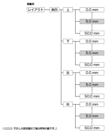 PSコマンドにより用紙選択が行なわれた場合は、本メニューで指定した上下左右の余白値は無視されます。
