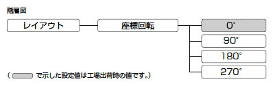 回転角度を90°単位で指定します。0°のときは座標を回転しません。