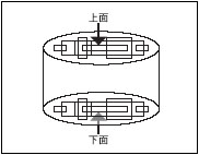 座標回転とミラー反転の機能を組み合わせると、たとえば円筒形の上面と下面の図を印刷するような場合に、どちらか一方の作図データがあれば両方の図を印刷できます。ミラー機能では、上面から見た場合の文字や数字なども下面からでは逆に投影されることになります。