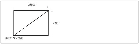 長方形の対角線上の角となる位置を現在のペン位置からの相対座標で指定します。