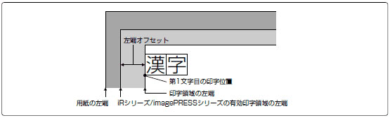 左端オフセット量は「用紙位置微調整」が初期値「0」の場合です。