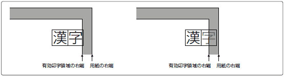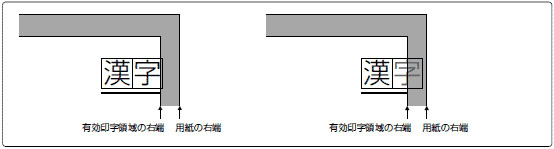 文字にアンダーラインを引いている場合、同様に文字幅が有効印字領域を越えなければ、文字およびアンダーラインを印字しますが、文字幅が有効印字領域を越える場合は、文字を印字せずに有効印字領域内のアンダーラインだけを印字します。