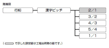 2バイトコード文字(漢字)の文字ピッチを1バイトコード文字(ANK文字)の文字ピッチの何倍にするかを設定します。